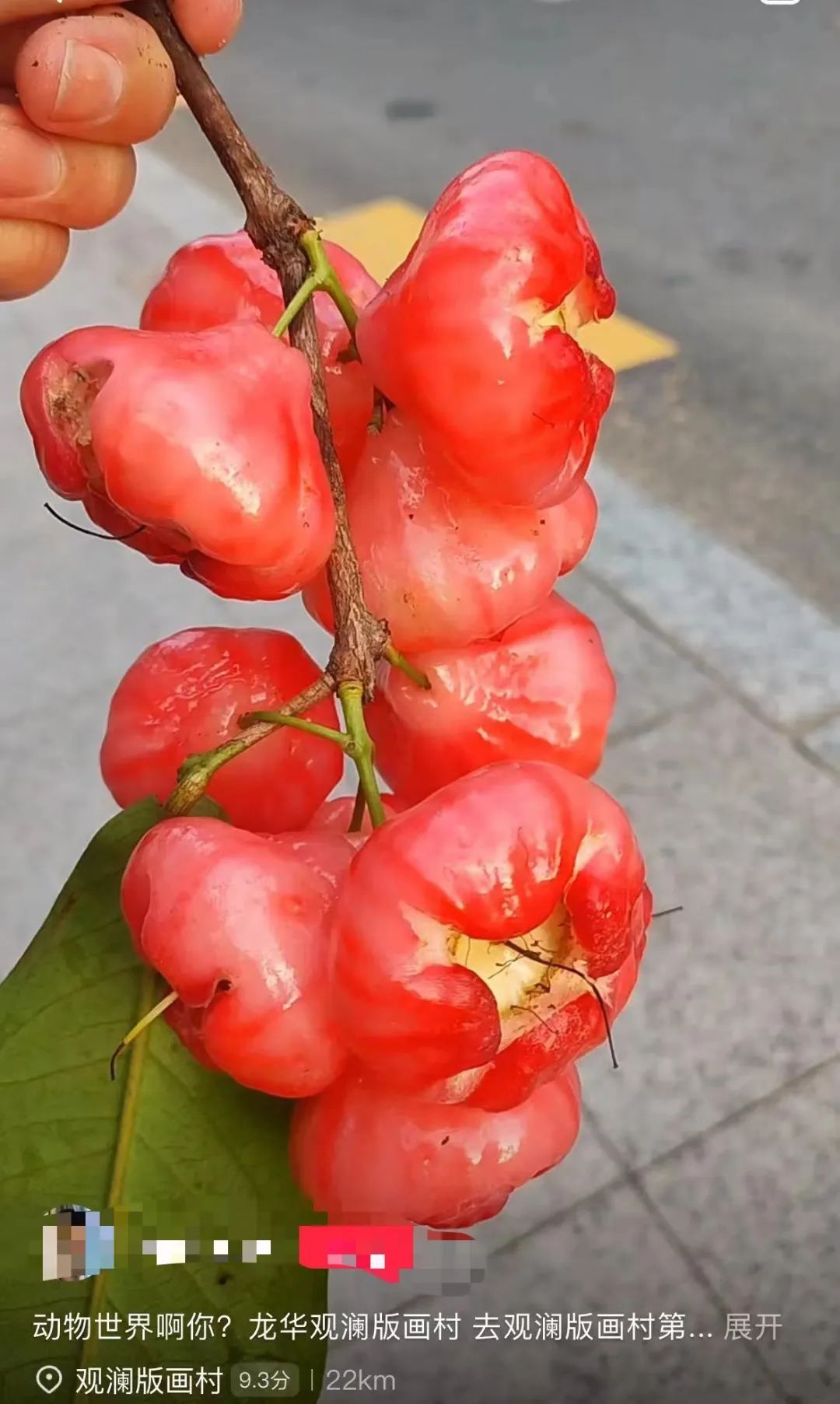 这些粉色的果子叫莲雾,是典型的热带亚热带植物。莲雾学名洋蒲桃,原产自马来西亚及印度,在1624-1662年由荷兰人从爪哇引入我国。莲雾适应性强,性喜温暖,怕寒冷,喜好湿润的肥沃土壤。